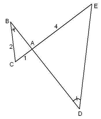 2. In de figuur is DE//BC. Volgens welk kenmerk zijn ##Delta ABC## en ##Delta ADE## gelijkvormig?